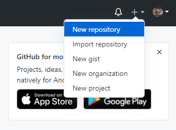 그림과 같이 Github에 로그인 한 후 오른쪽 상단에 위치하고 있는 [+] 기호를 클릭하여 "New repository"를 클릭한다.