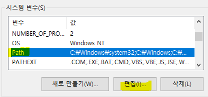 그 다음 변수 목록 중 'Path'를 찾아 클릭한 다음 [편집]을 클릭한다.