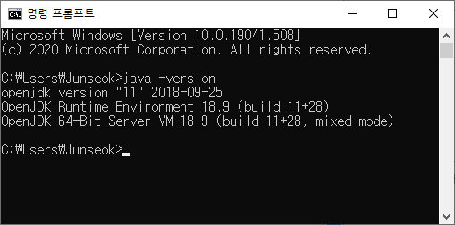 이렇게 자신이 설치한 OpenJDK의 버전이 정상적으로 표시된다면 완료!!