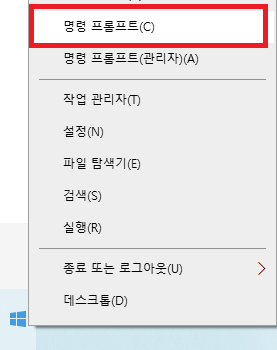 시작 버튼을 마우스 오른쪽 버튼으로 클릭하고, [명령 프롬프트] 또는 [PowerShell]을 실행한다.