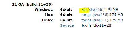 만약 바로 위에서 자신이 설치하고자 하는 버전이 있다면 바로 아래 사진에서 [Windows/x64] 우측의 [zip]을 클릭하여 다운로드 받는다. 그 후에 < OpenJDK 설치와 환경 구성 >으로 넘어가준다.