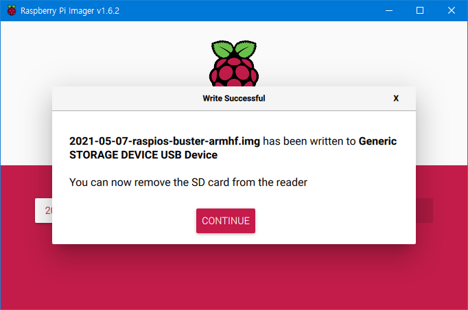 이제 microSD 카드에 운영체제 설치가 끝난 것이므로 microSD 카드를 컴퓨터와 리더기로부터 제거해도 된다.