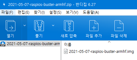 * 이미지 파일을 직접 받으셨다면 꼭 이미지 파일이 맞는지 확인하자. 사진에는 .ZIP 으로 되어있지만 .IMG 등 이미지 파일이 선택되어야한다. (아래에 시행착오 있음)