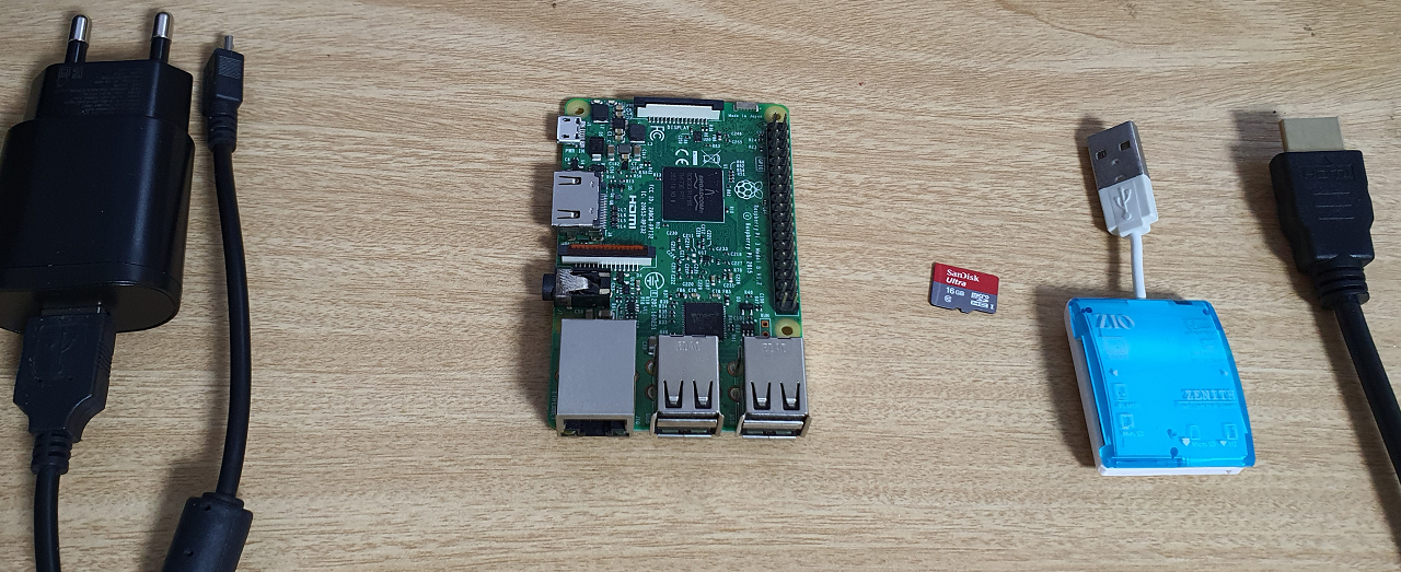 - microSD 카드 (Lite 사용시 4 GB 이상, Desktop 또는 Recommned S/W 사용시 8 GB 이상, 모든 S/W 설치시 16 GB 이상)