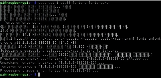이 명령어는 fonts-unfonts-core를 설치하는 명령어로 패키지를 설치하면 한국어 공용 폰트를 설치하게 된다.