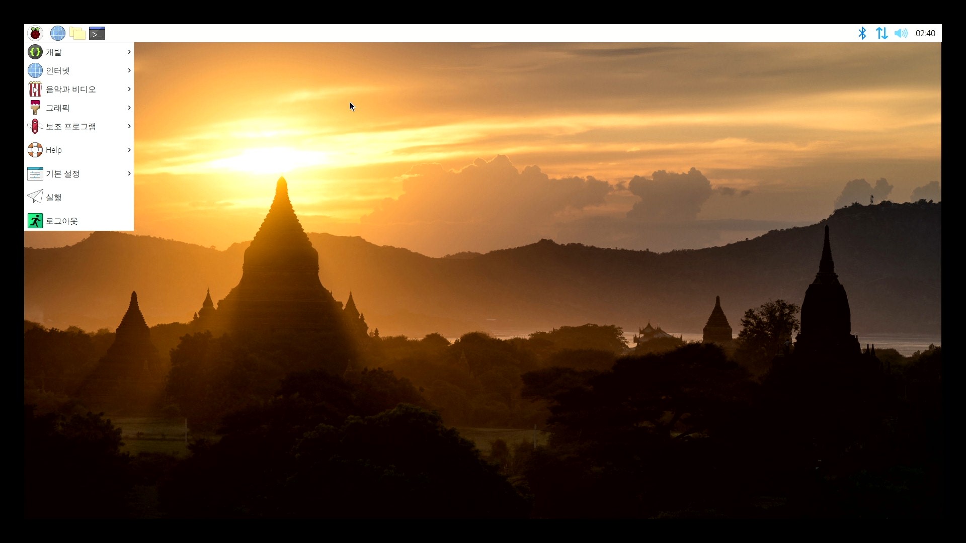 라즈베리파이에서 터미널(Termial)을 열고