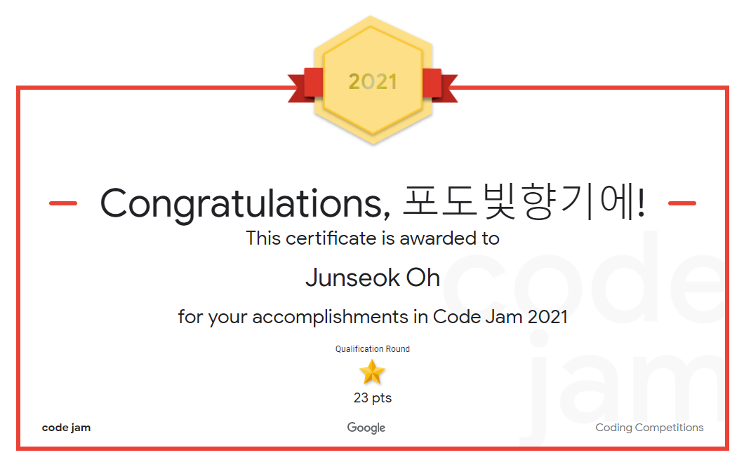 내년에는 반드시 Code Jam Round 2 이상 진출해보려고 합니다.